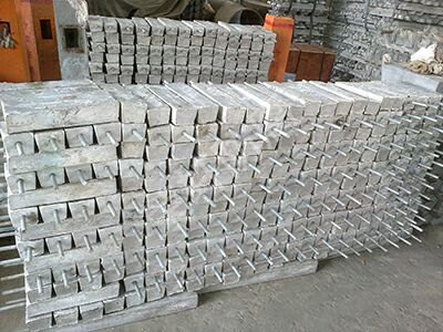 我公司按國標 GB/T17731-2015《鎂合金犧牲陽極》研發(fā)生產(chǎn)的SMG系列鎂合金犧牲陽極(簡稱:鎂陽極)適用于土壤、淡水等介質(zhì)中的金屬構筑物的犧牲陽極陰極保護。 作為理想的犧牲陽極材料該產(chǎn)品具有以下特點: